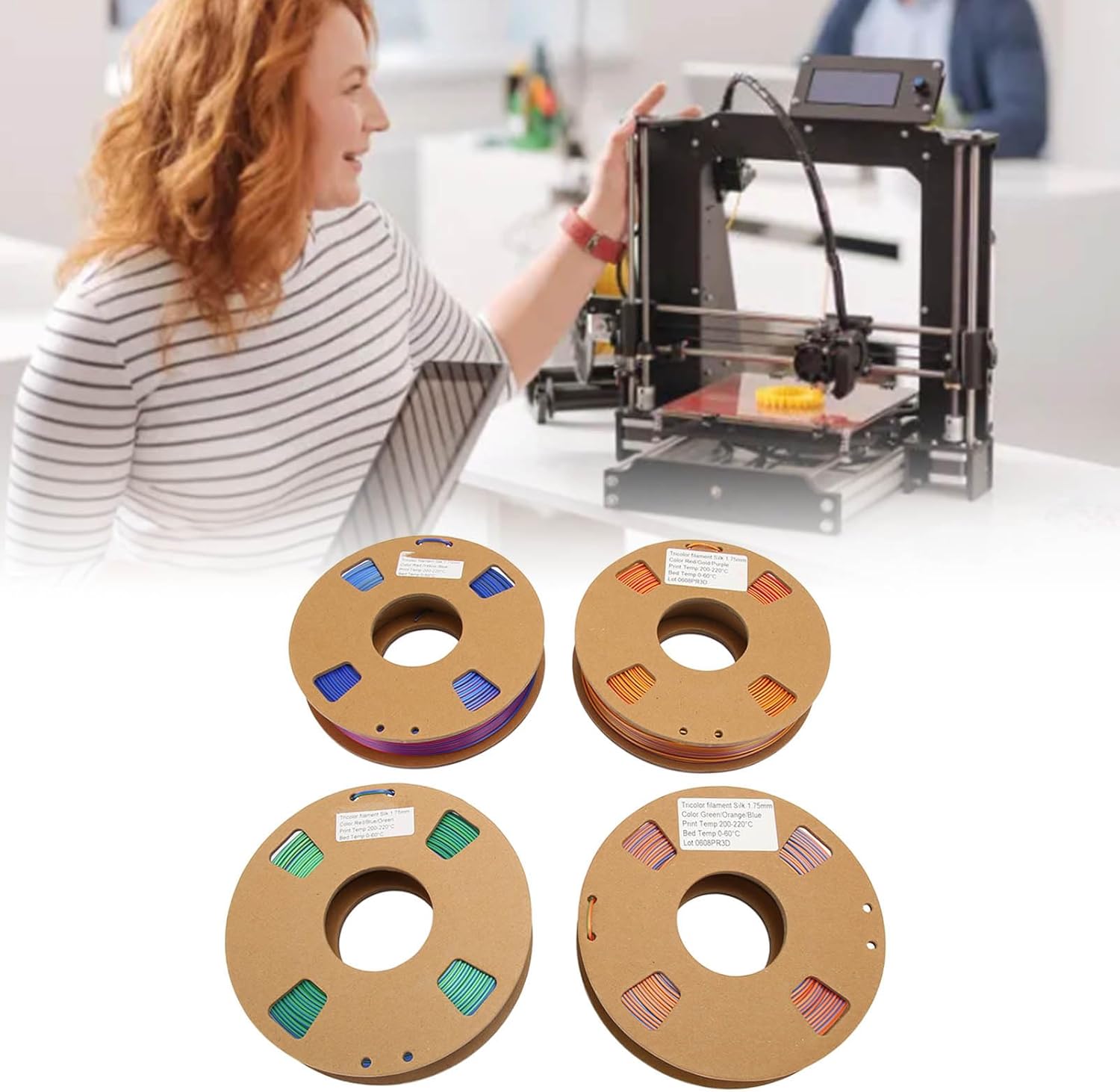 Item Type: 3D Printer FilamentMaterial: PLAColor: Red Yellow Blue, Red Blue Green, Orange Blue Green, Red Gold PurpleDiameter: 1.75mm ± 0.03mmRecommended Printing Temperature: 200℃ to 220℃Recommended Bed Temperature: 0℃ to 60℃Package List:4 x3D Printer Filament