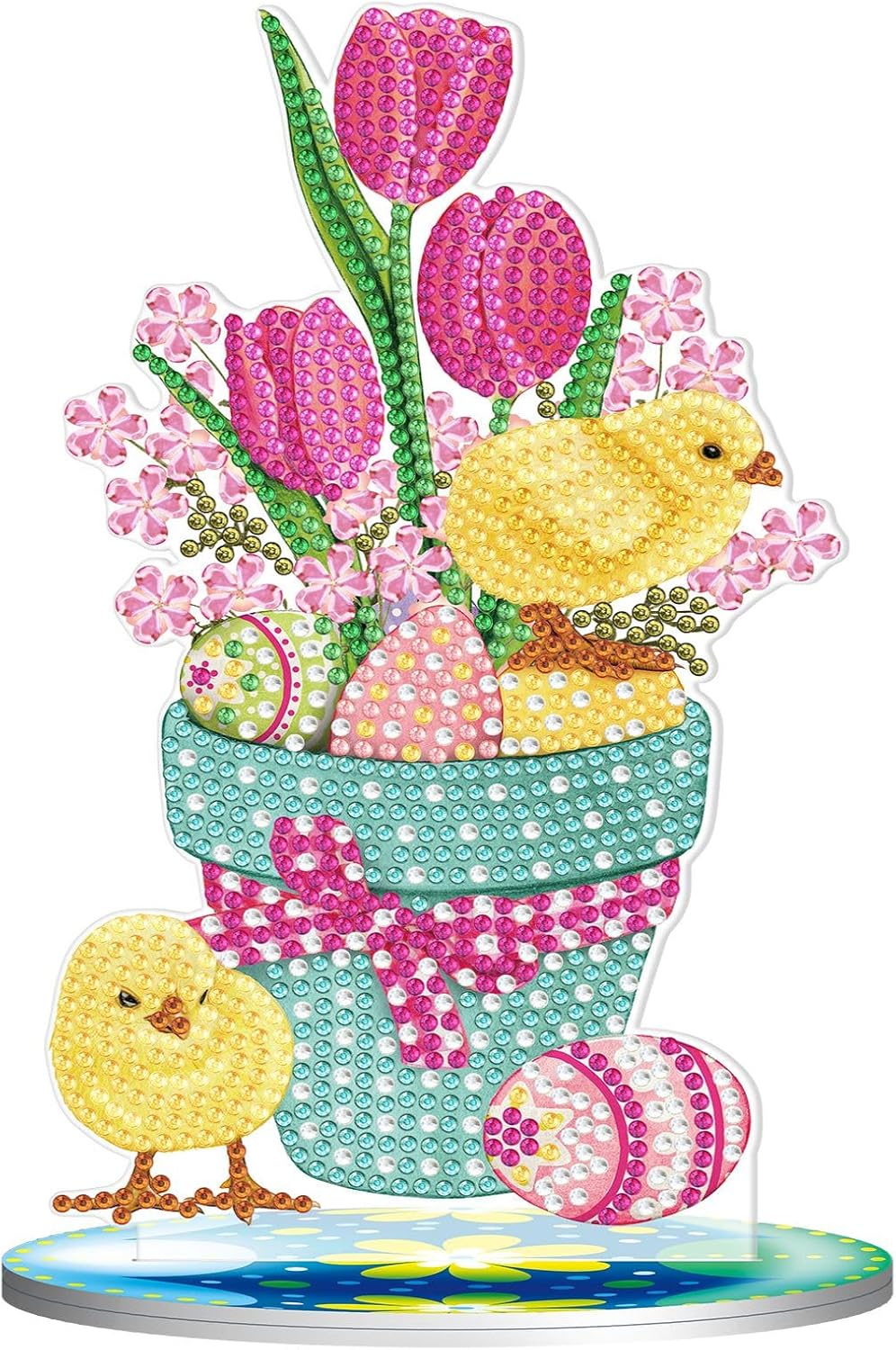 | Included Components | desktop ornament, diamond dotting tool kit (colorful diamond bag, clay glue, pen, diamond tray), acrylic oval small base, drilling bag, dot-drilling tool kit, instruction booklet |