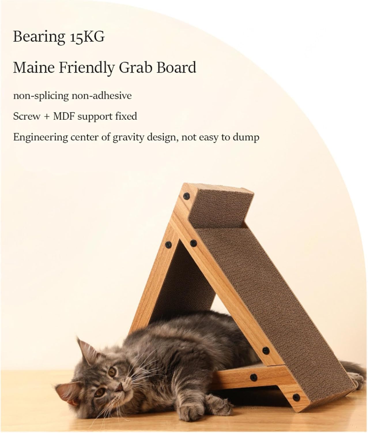 Product parametersBrand: NIBHZProduct: Vertical triangular scratching post for catsMaterial: corrugated paper, fiberboard, screwsFunction: sleep, playApplicable: cats, dogs and other pets weighing less than 15KGSize: 53.5X25X46cm