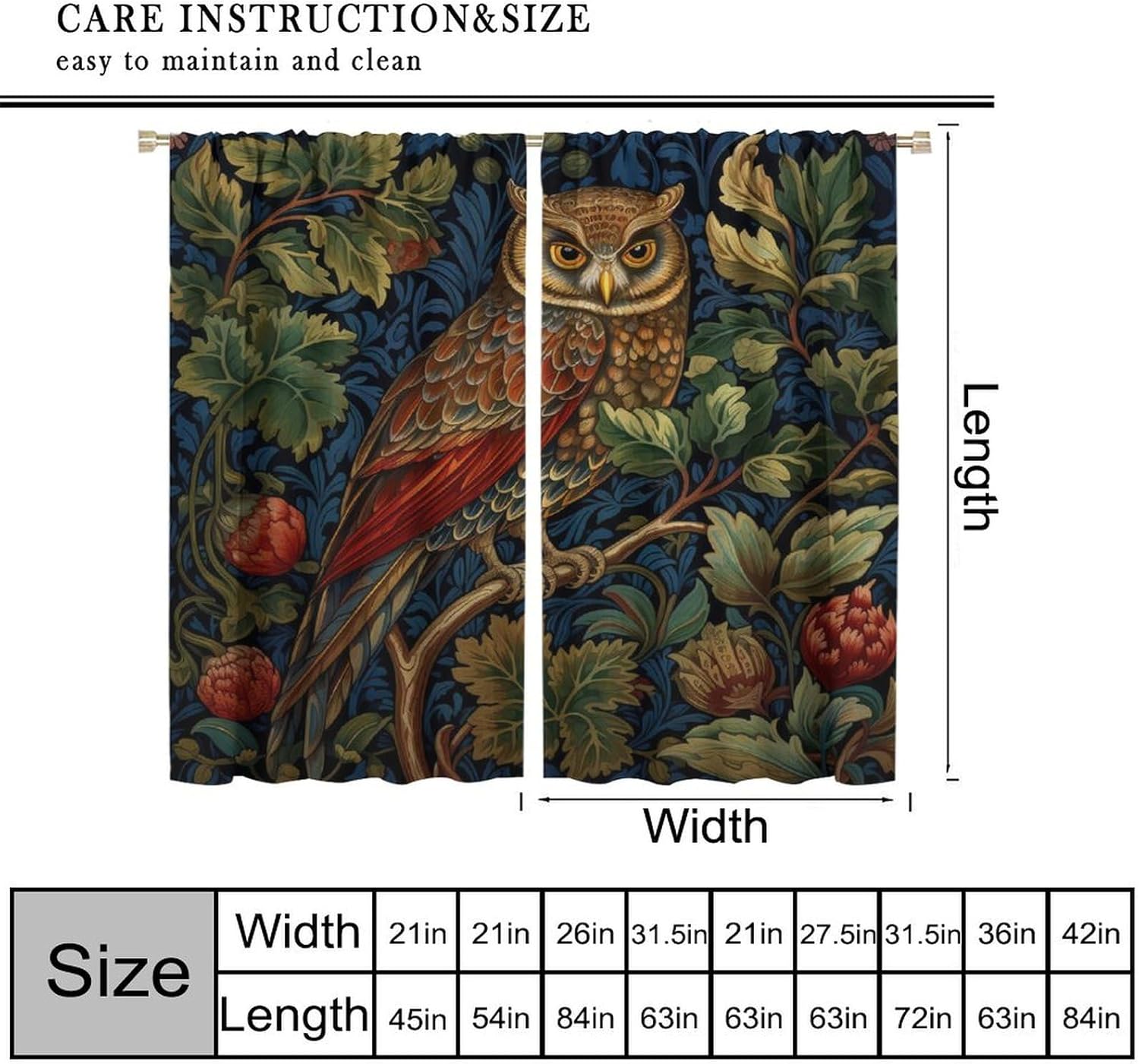 Made of 100% high-quality polyester fiber. Nice Decor, Make your Room update, soft, fresh look; bring harmony to your family.Surprising designs gift idea for your mom, dad, children, grandma, wife, husband and friends. We are a professional curtain manufacturer and distributor, mainly supplying 10 sizes.42"W x 45"L,42"W x 54"L,42"W x 63"L,55"W x 63"L,63"W x 63"L,63"W x 72"L,72"W x 63"L,52"W x 84"L,84"W x 84"L,52"W x 96"L two curtain panels included. Our curtains have several features: blackout, thermal insulated,noise reduction,can protect your furniture and floors,extend their service life. Night shift, afternoon naps, late morning sleeper, or others enjoy the darken room and ensures total privacy.